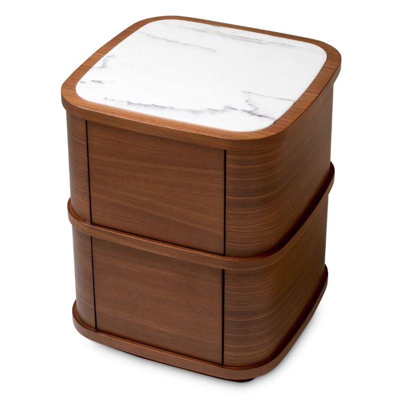 Прикроватная тумбочка Cabana S, отделка шпон ореха, бело-сиреневый мрамор