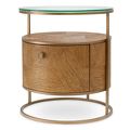 Прикроватная тумбочка Napa Valley, отделка бронза, плетеный шпон дуба, прозрачное стекло, 56D50 см